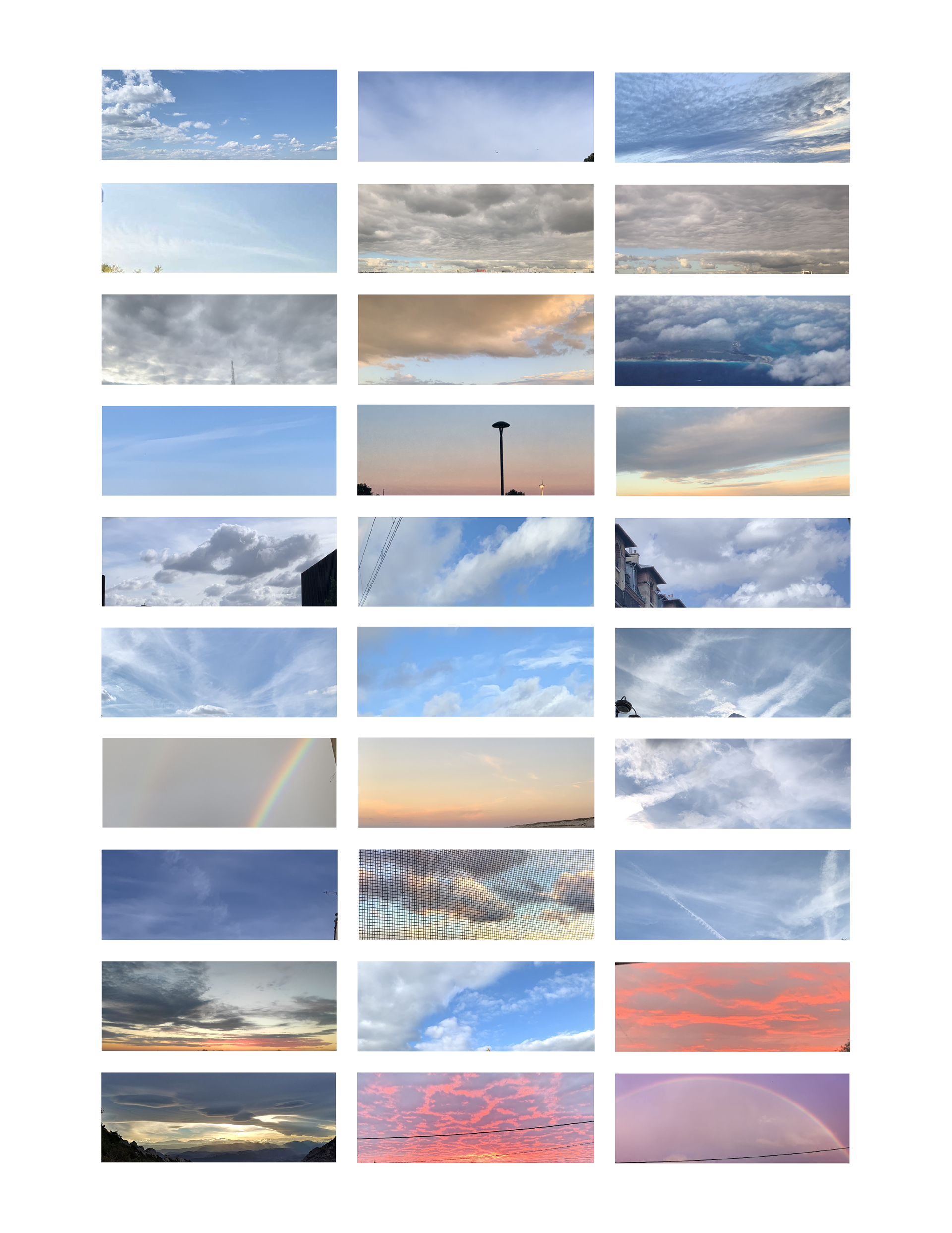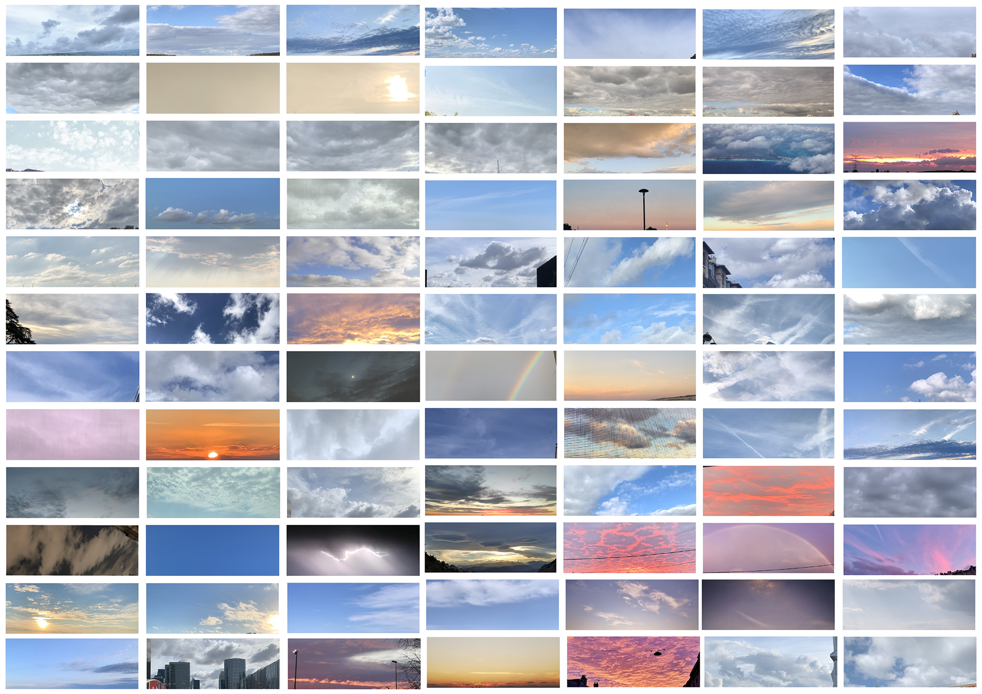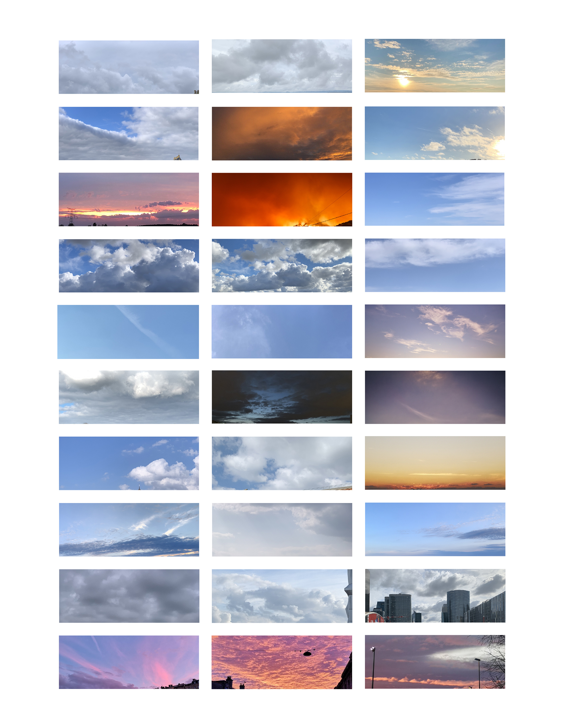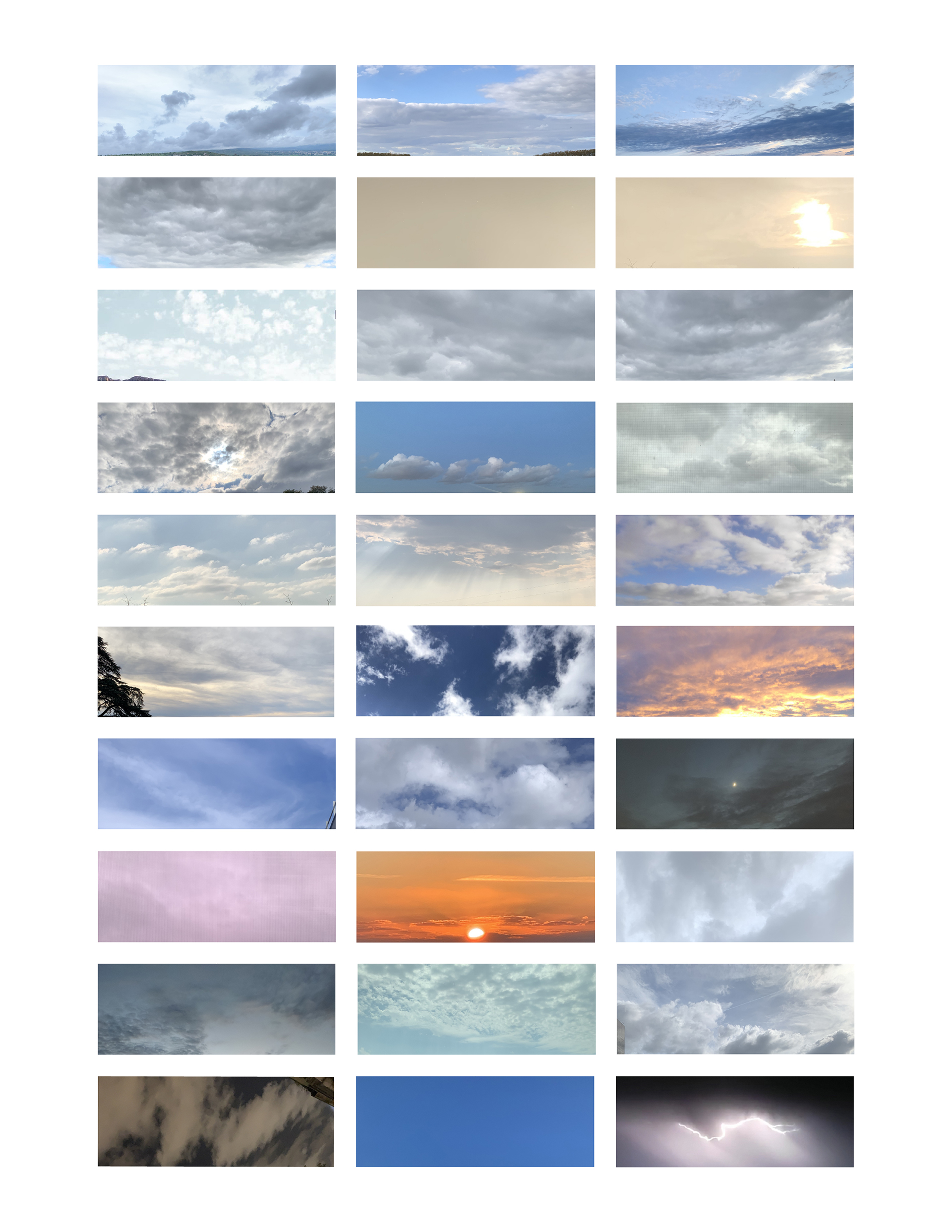 Collecter un moment, une expérience, une animation, un mouvement d'un même ciel. Se noyer dans l'innombrable possibilités de voir le même élément. J'aurais pu continuer à l'infini cette collection; voici une partie, à vous de créer la partie restante qui est bien plus étendue.