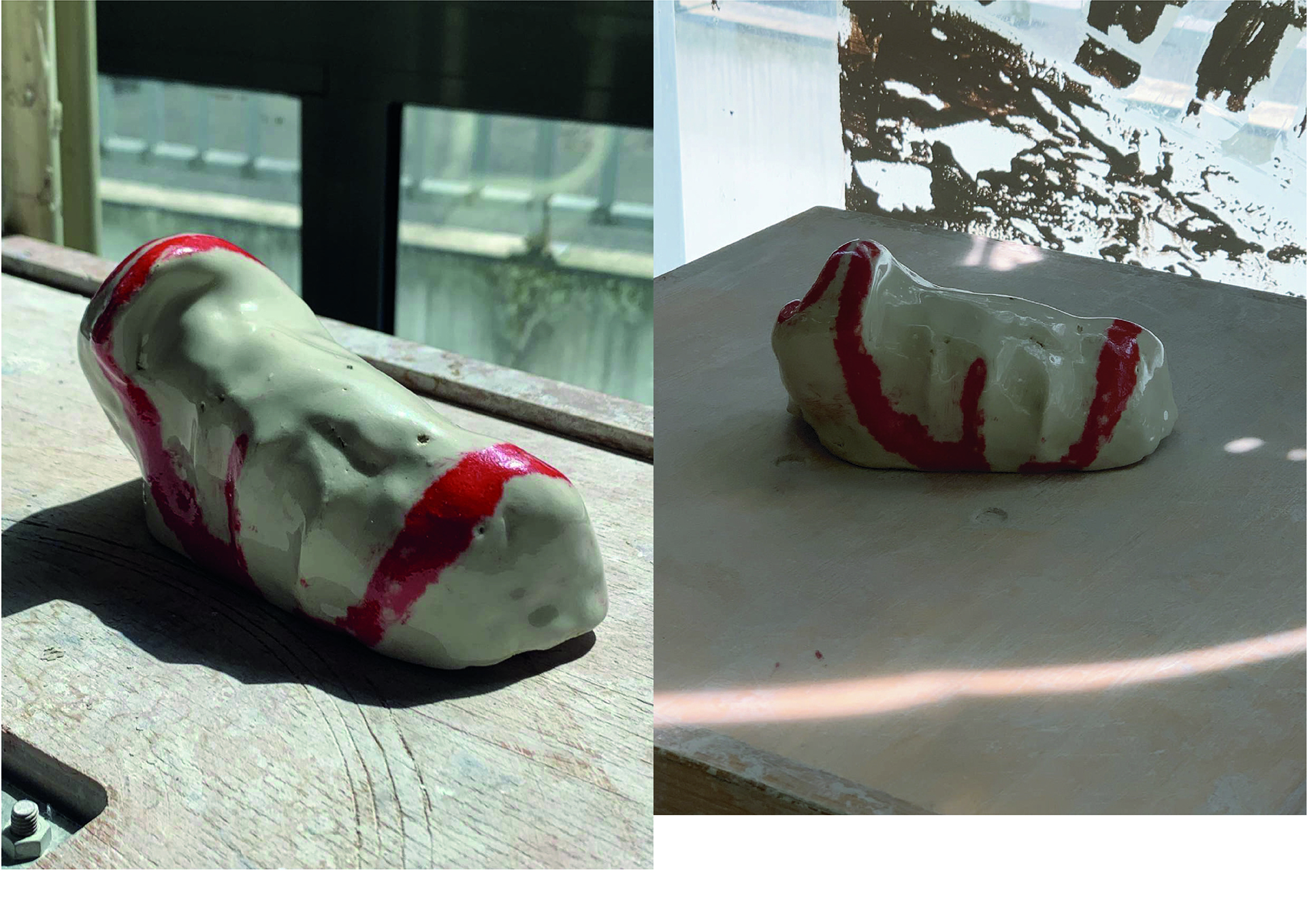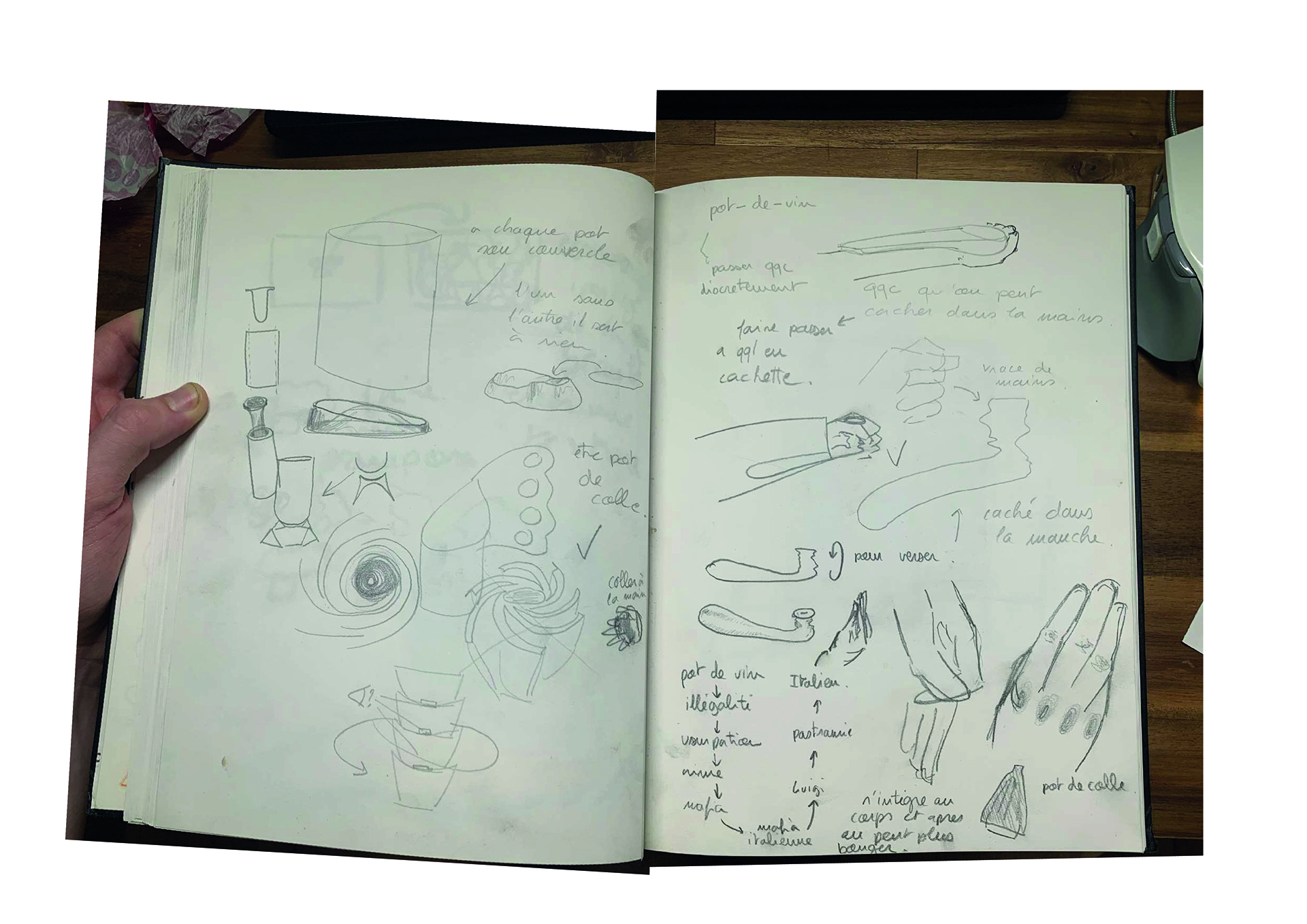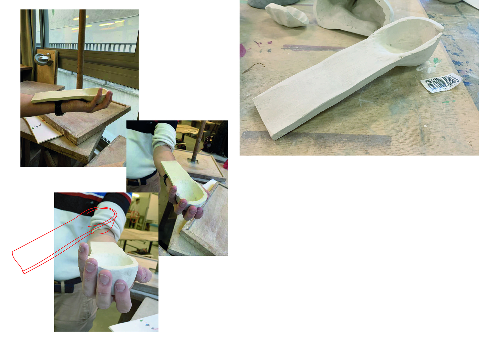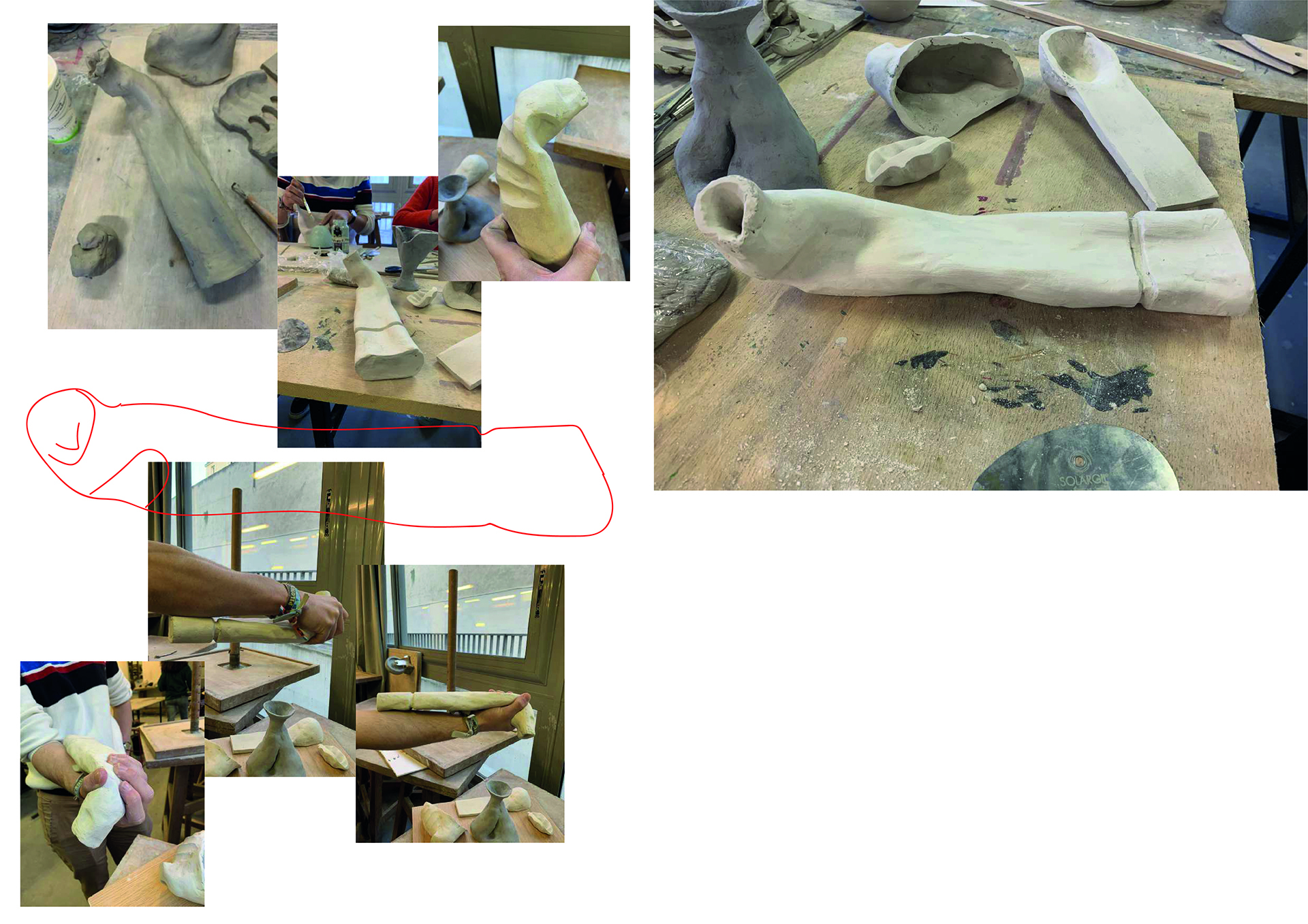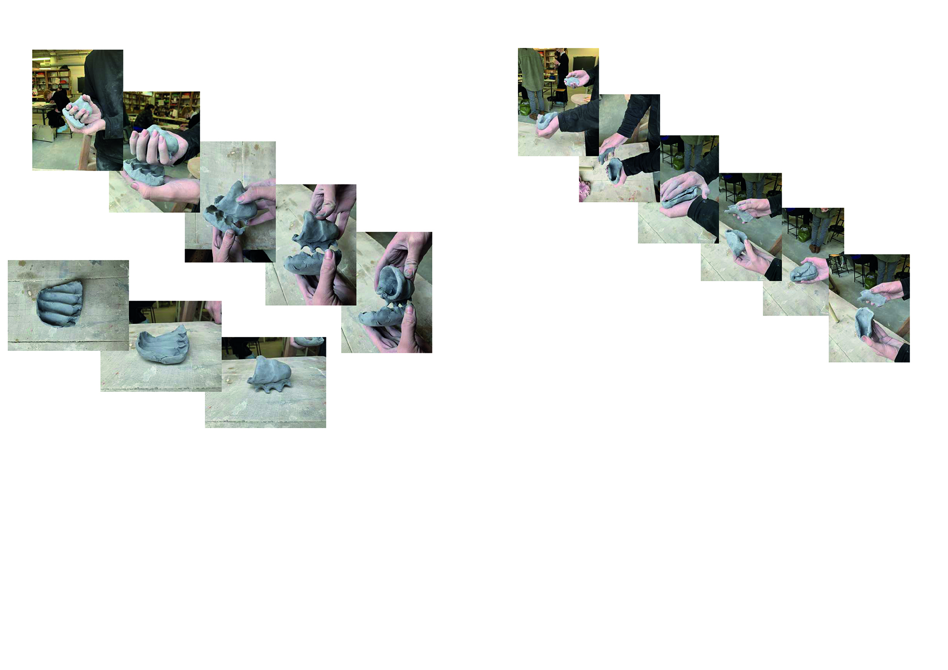 Fabriquer une série de pots répondant tous au même jeux de mot :::pot de colle. L'idée de la matière qui prend pocession et grandit autour de la main de l'homme qui l'utilise, comme s'il n'allait jamais pouvoir l'enlever. Entre un pot qui recouvre la main entière en faisant geste du che vuoi, ou le pot qui s'allonge le long du bras comme s'il voulait se cacher sous la manche. Des réponses qui rendent le pot amusant à tenir.